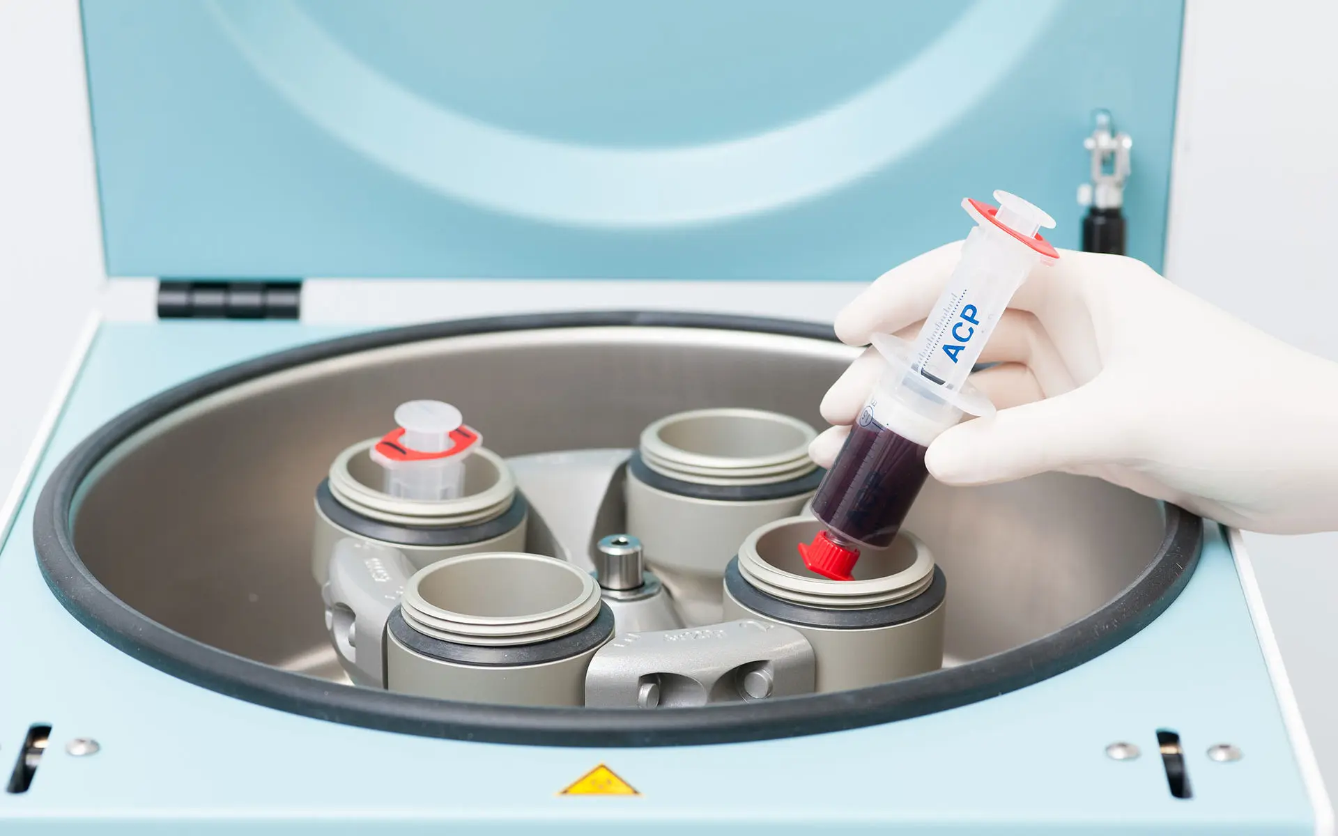 L’infirmière réalise un prélèvement sanguin.Elle place ensuite ce prélèvement dans une centrifugeuse pendant 5 min environ. Ceci permet d’isoler le plasma (plus léger que les autres composants du sang). Le médecin réalise alors aussitôt l’injection dans le tendon ou l’articulation concernée.